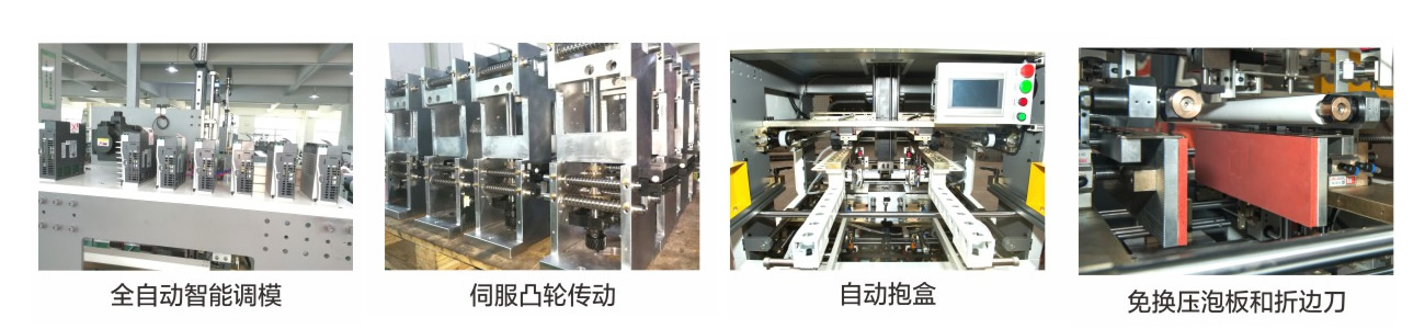 1. Servo cam drive: the servo motor is used to drive the cam action through the planetary reducer, so that the edge of the paper box can be folded into the forming work, with stable operation and long service life
